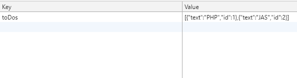예를 들어 현재 local에 [(text : PHP, id : 1), (text : JAS, id : 2] 이렇게 들어 있다고 하면