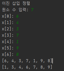 print('이진 삽입 정렬')