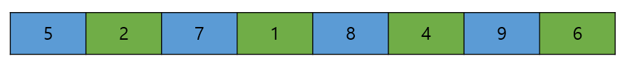 위와 같이 8개의 원소를 갖는 배열이 있을 때,