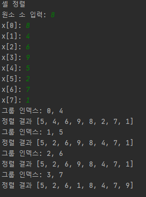 이렇게 4칸 떨어진 원소를 정렬하는 방법을 4-정렬이라고 합니다.