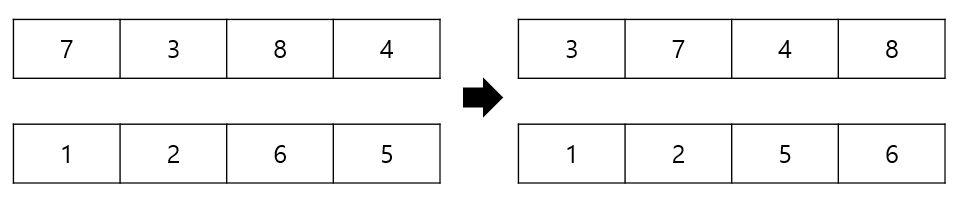 (5, 7, 8, 9), (2, 1, 4, 6) --> (5, 7, 8, 9), (1, 2, 4, 6) >>>>>>> 2-정렬