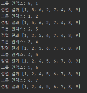 print(f'그룹 인덱스: {j}, {i}')