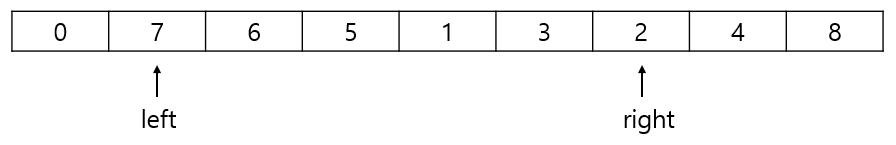 그리고 맨 앞 인덱스를 left, 맨 끝 인덱스를 right라고 했을 때