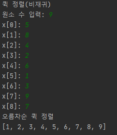 print('오름차순 퀵 정렬')