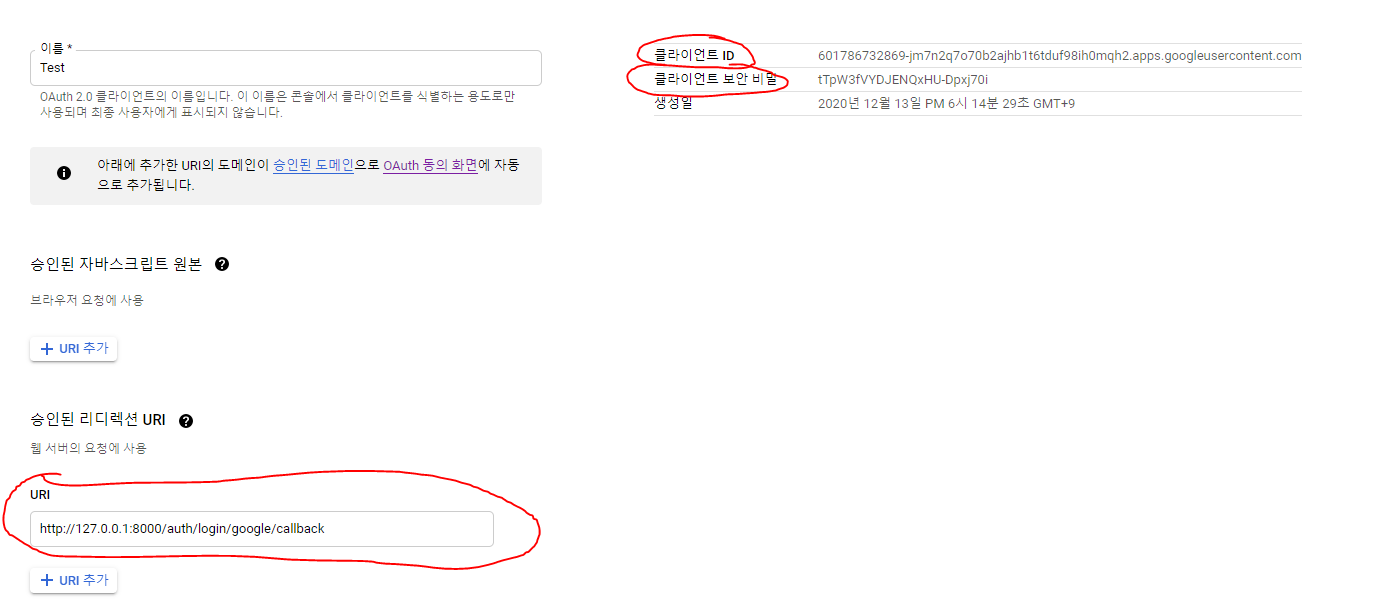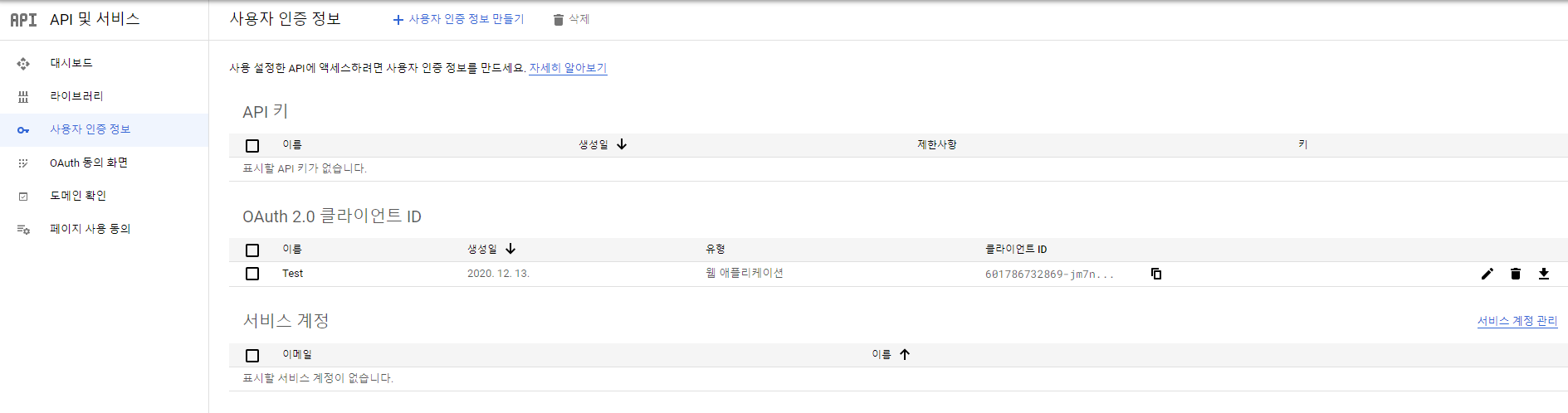 다시 이 화면으로 돌아와서 만들어둔 클라이언트 ID를 눌러줍시다.