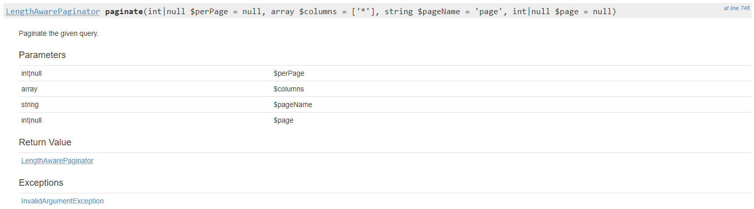 그래서 라라벨 api문서를 확인해서 paginate 메소드를 확인해봤습니다.