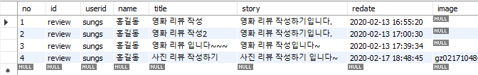 위쪽에서 셀렉문을 이용해 리뷰의 정보를 받아옵니다.