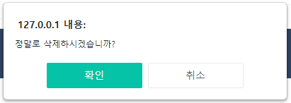 삭제 버튼을 누르면 위와 같이 확인 창이 나옵니다.