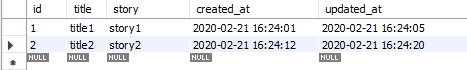 그리고 위와 같이 id, title, story, time 콜롬을 만들었습니다.