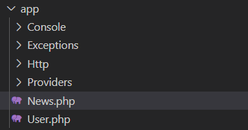 터미널에 php artisan make:model News를 입력해 News 모델을 만들어줍니다.