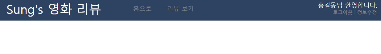 이렇게 화면 오른쪽 상단에 이름과 환영 문구가 보이는 것을 확인할 수 있습니다.