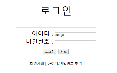 제가 로그인시 아이디 부분에 sungs를 입력했으면