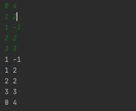 0 4, 1 2, 1 -1, 2 2, 3 3을 입력하면
