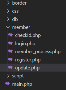 그리고 member 폴더 안에 update.php 파일을 만들어줍니다.