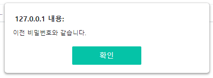 그리고 비밀번호가 이전 비밀번호와 같을 때 에러 메세지를 띄우게 하는 곳입니다.