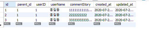 parent_id 콜럼은 게시물의 id 값을 넣어줍니다.