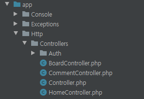 게시판의 CRUD를 관리하는 BoardController.php 파일을 열어줍니다.